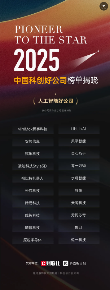 近日,由财联社与《科创板日报》联合发起的“2025中国科创好公司”评选结果揭晓,追一科技凭借其在技术创新、产品研发及市场拓展等方面的卓越表现,入选“2025人工智能好公司”榜单。